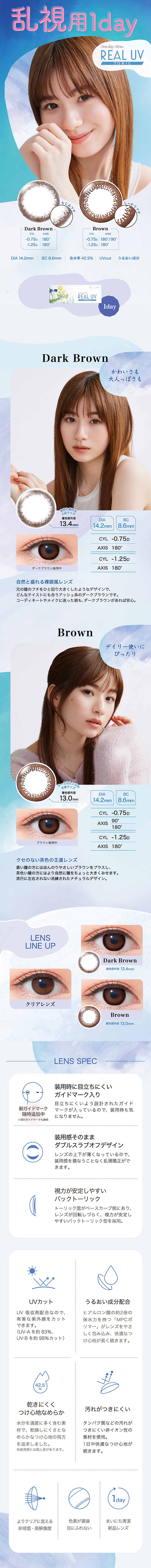 #カラコン #ワンデー #乱視 #ブラウン #UVカット #MPCポリマー #うるおい #1day